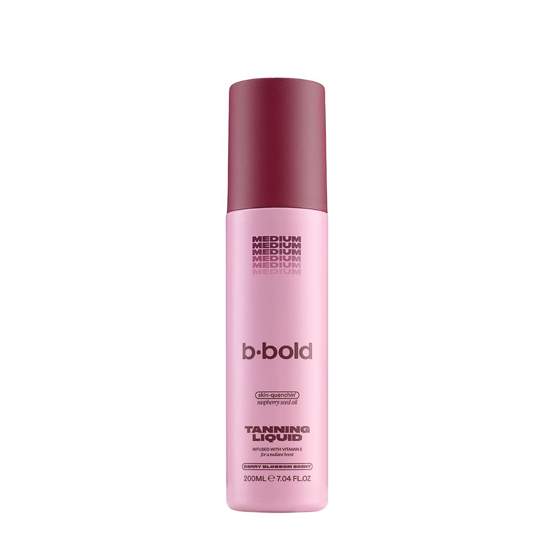 b.bold Liquid Medium 175mlTanning Liquid is a tinted tanning liquid infused with hydrating raspberry seed oil & vitamin e that work together to quench thirsty skin. The lightweight, berry blossom scented formula is touch dry in seconds, giving dull skin an instant radiant boost.