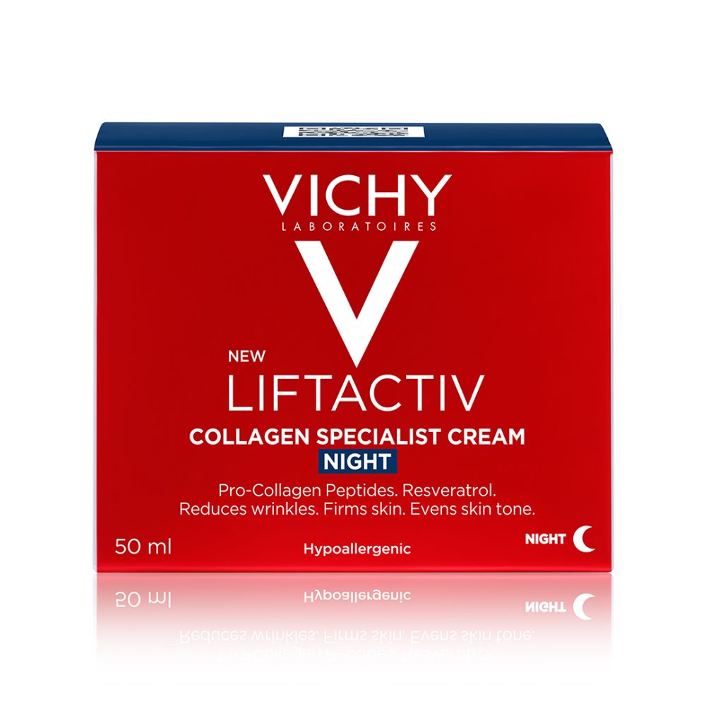 Use Vichy Liftactiv Collagen Specialist Night Cream every evening, after your serum and eye care.